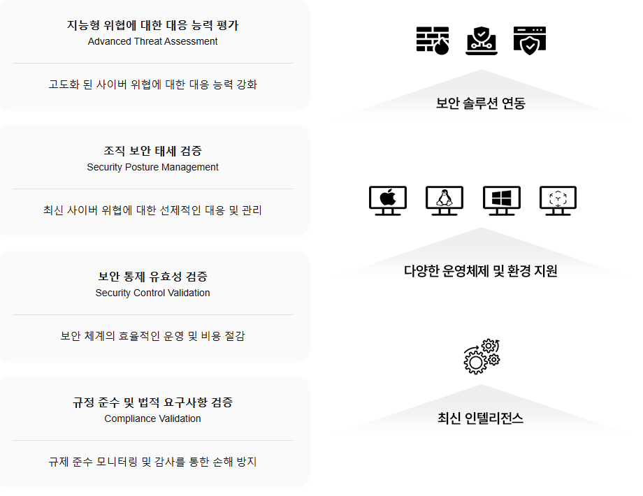 단순 시뮬레이션이 아닌 실제 공격과 유사한 공격행위를 수행함으로써 위협 대응에 관한 구체적이고 명확한 대응책 마련을 가능하게 합니다.